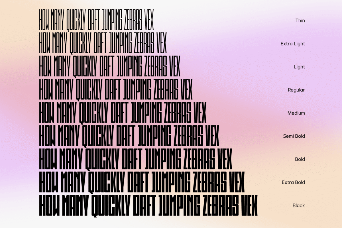 Psilograph is a extra condensed type style. It will give a strong impression which can be matched with basic sans serif fonts as a body copy that can make it more casual and modern looks. Perfect for headlines, tall-format prints, posters, and displays. 9 thicknesses available will make it easier for you when making choices on the design. Package includes OTF, TTF, WOFF, WOFF2.