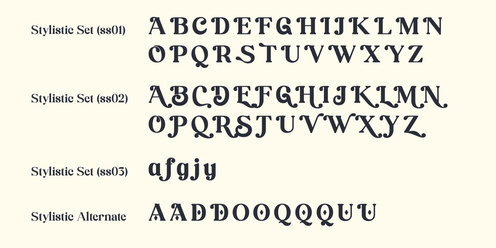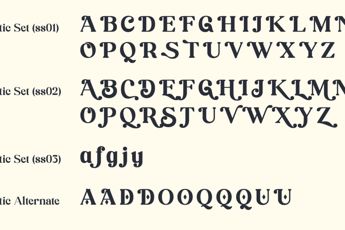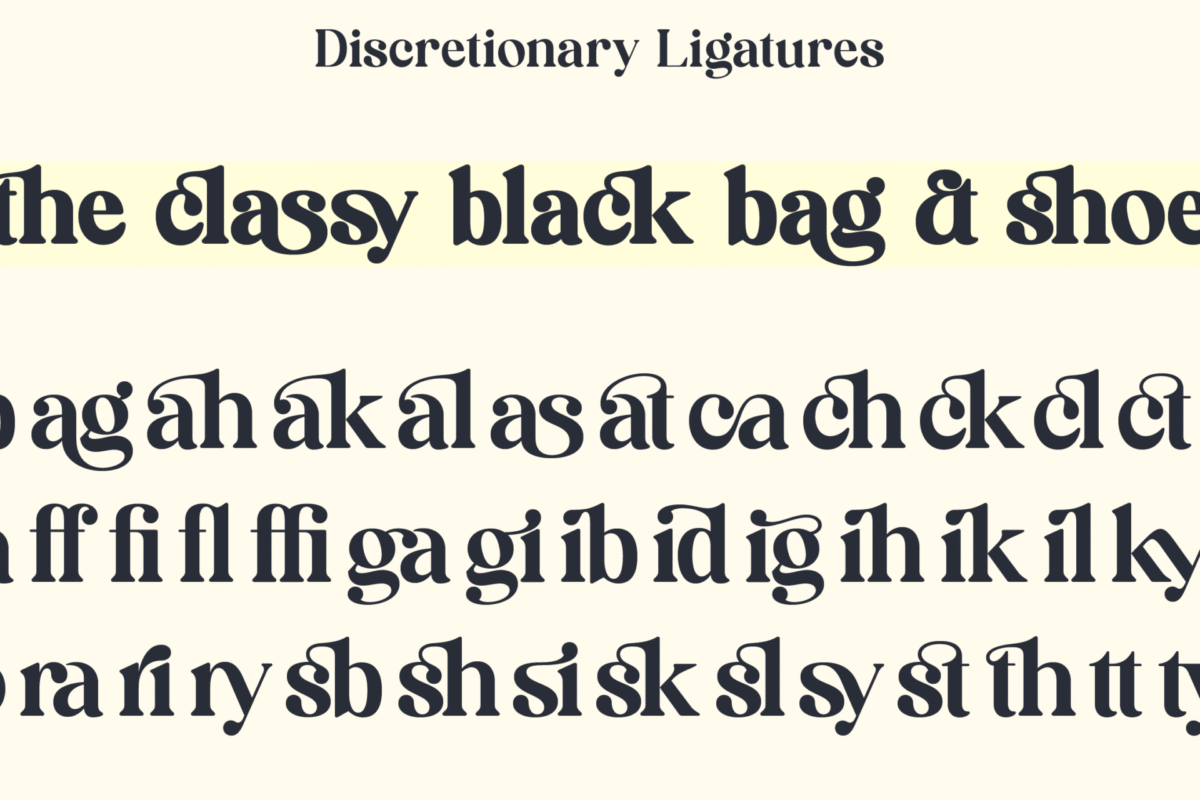 Brandey comes in five carefully curated thicknesses, allowing designers to select the perfect weight for their specific needs, ensuring versatility and precision in every design. But Brandey’s versatility doesn’t stop there. It’s equipped with an extensive range of OpenType features, including Discretionary Ligatures, Smallcaps, Stylistic Alternates, Stylistic Sets 1-3, Titling, and Swash options. This diverse set of features enables you to tailor the font to your creative vision, offering countless possibilities for customization and unique typographic expressions.