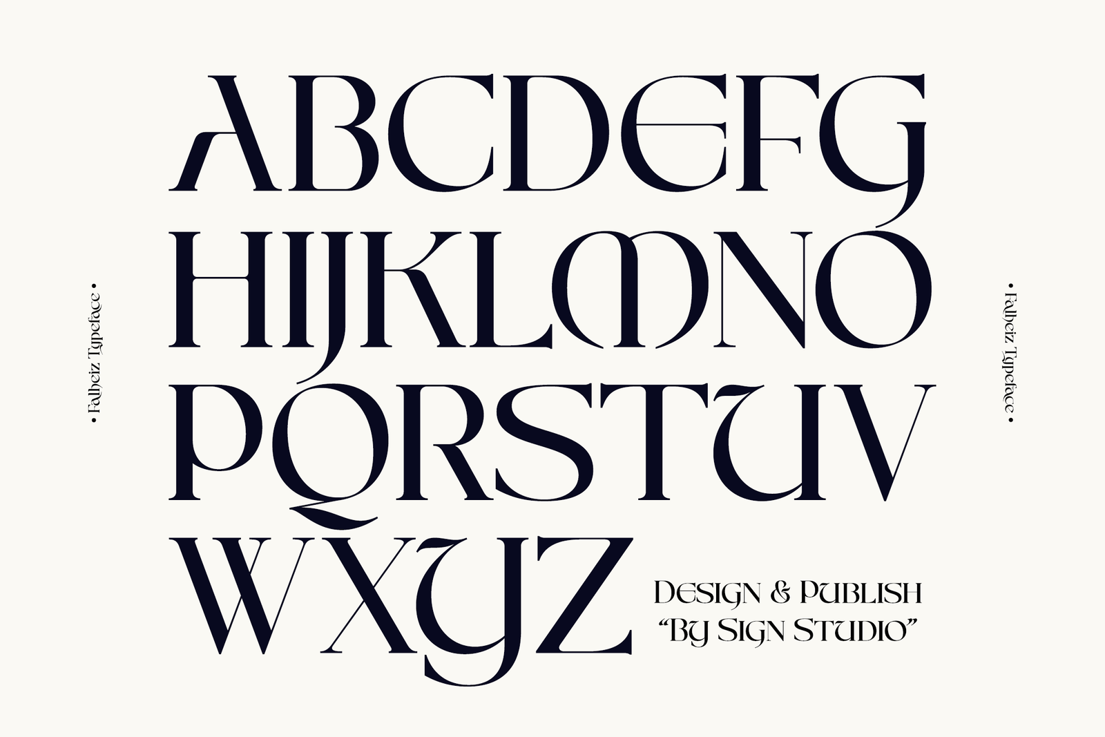 Falheiz is a stylish font that can bring classic memorial nuance. It’s a mix between a classic serif and copperplate style. Falheiz comes with a full uppercase, lowercase, numbers, punctuation, ligatures and also some alternates. This font is perfect for poster, fashion magazine, branding or logotype design and displays both masculine and feminine qualities. All character are PUA encoded.