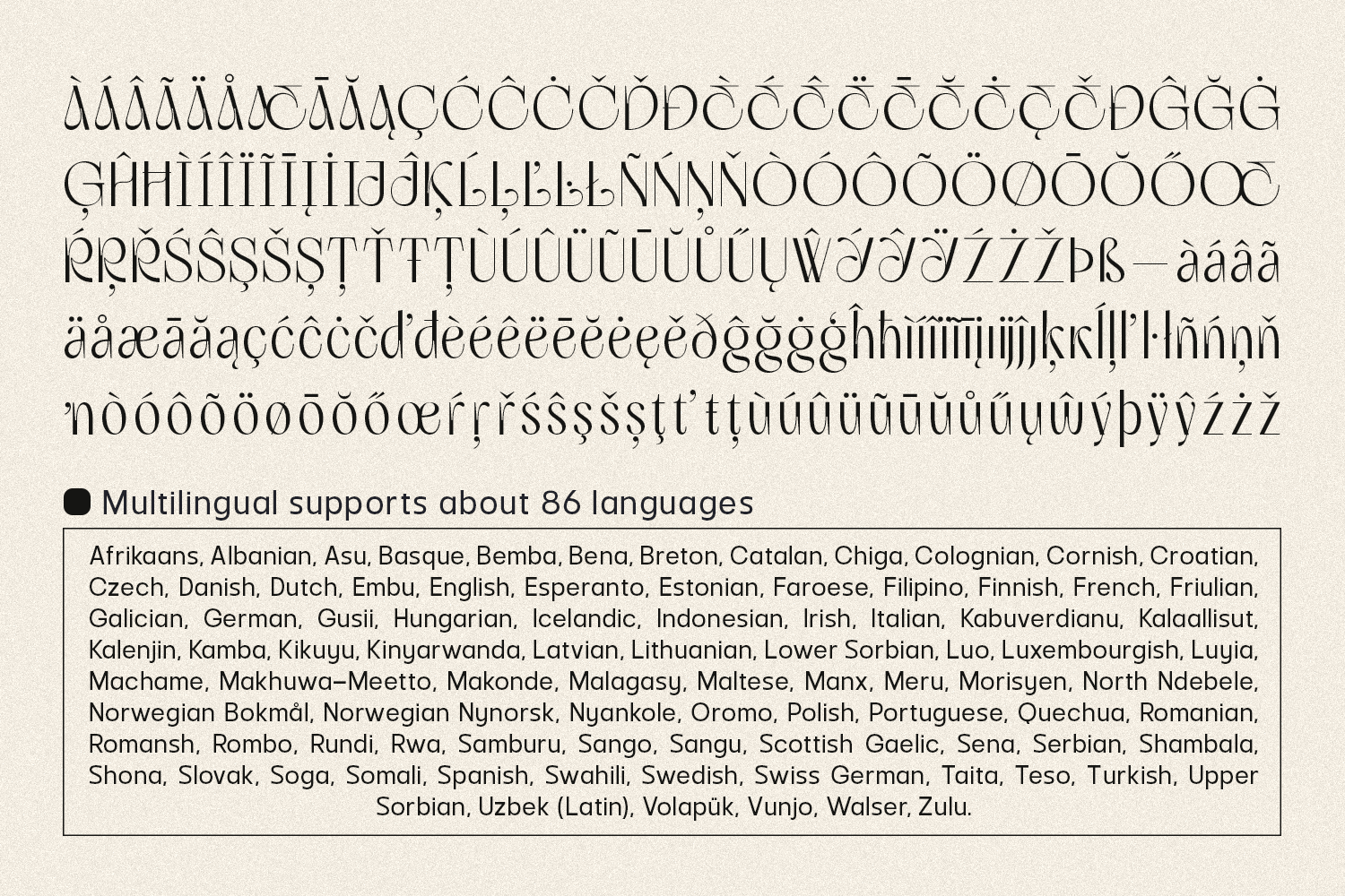 Support for over 80 languages makes it an excellent communication tool for anyone looking for a versatile yet beautiful font.