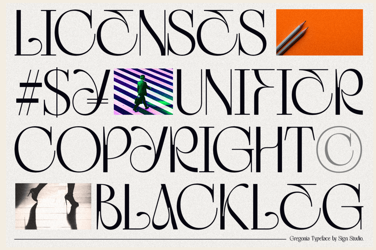 The high level of detail is designed to achieve a good level of harmony. Gregonia clearly has high aesthetic values, is classic and elegant. Even though this font is intended for decoration, it still maintains readability, which is of course the main point in every Sign Studio work.