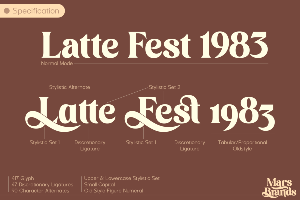 Mars Brands is an absolutely elegant serif font with lovely touch. This typeface includes beautiful stylistic alternates and discretionary ligatures. It will elevate a wide range of crafting ideas, from cards, product branding, labels, and more.This font is PUA encoded, which means you can access all of the glyphs and swashes with ease.