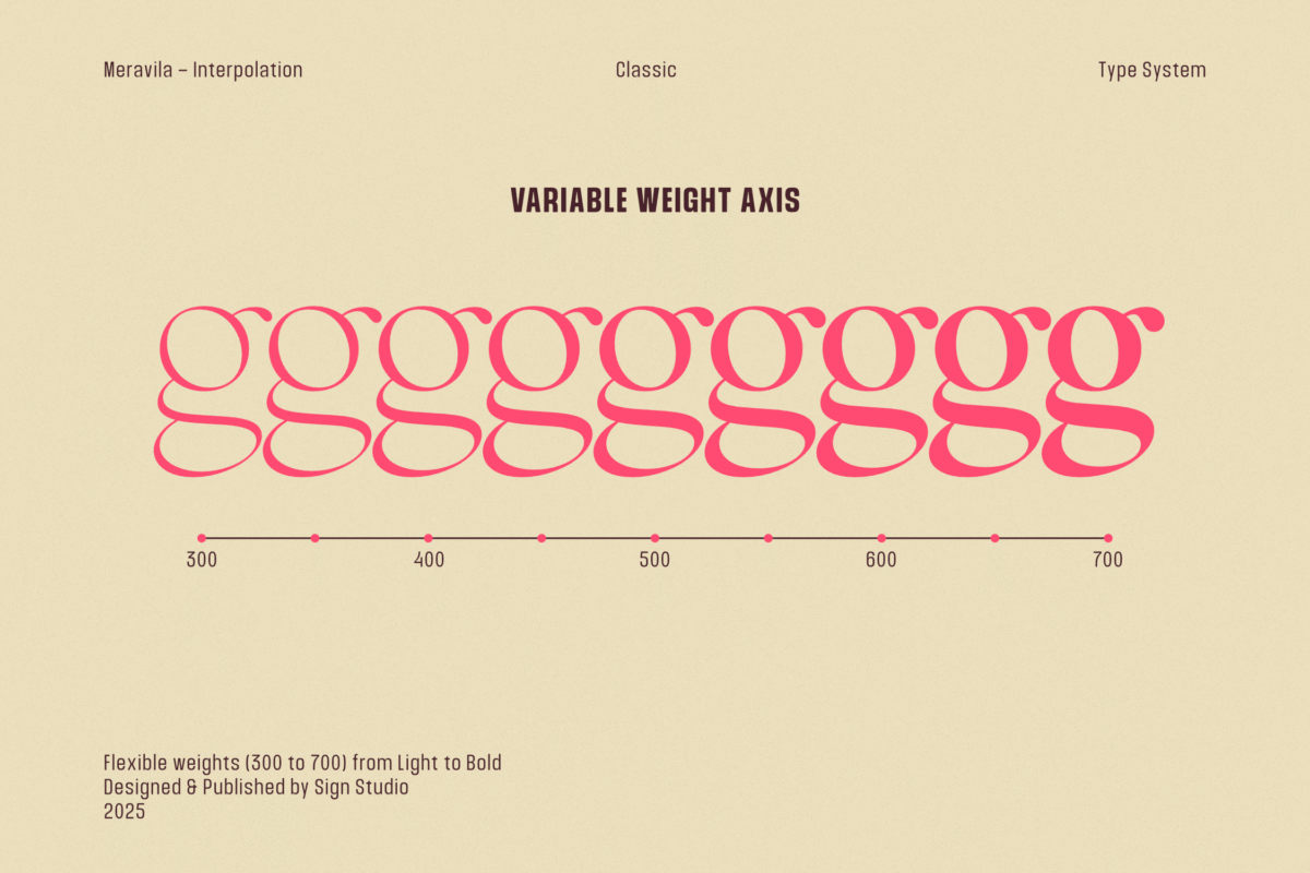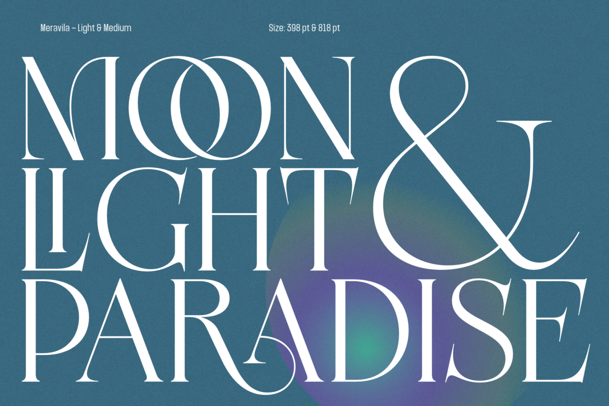 Now available as a Variable Font, Meravila VF gives you seamless control over its full weight range—from Light to Bold—within a single, flexible file. This makes it even more versatile and efficient for both print and digital projects.