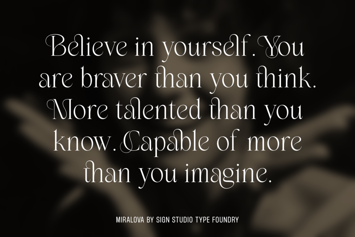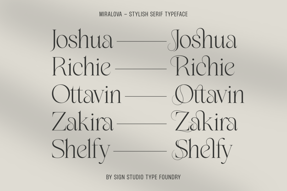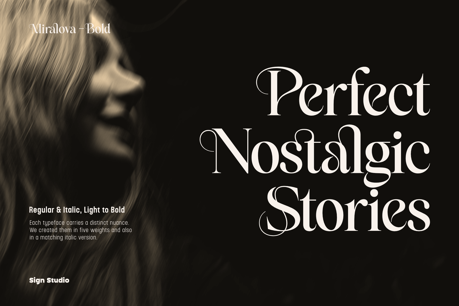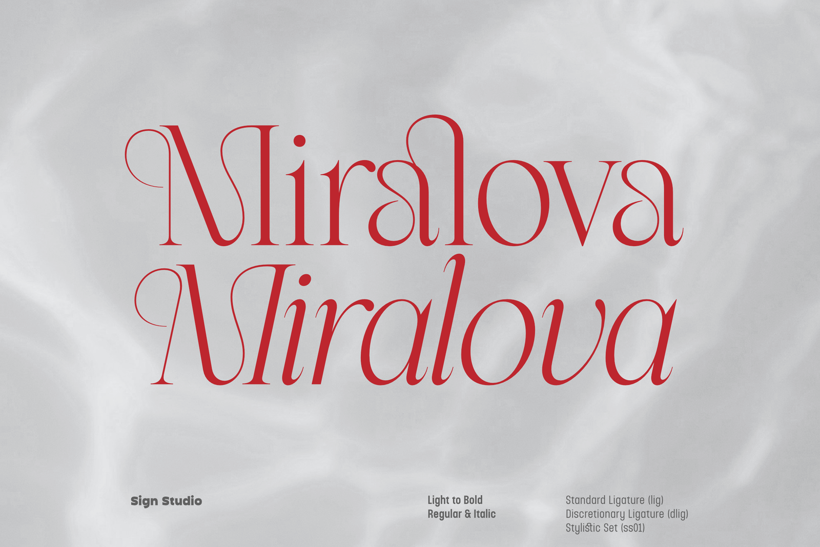 Miralova is a sophisticated serif typeface that blends classical structure with modern clarity. Designed with balanced proportions and high-contrast strokes, it delivers a calm yet confident presence across both print and digital applications.