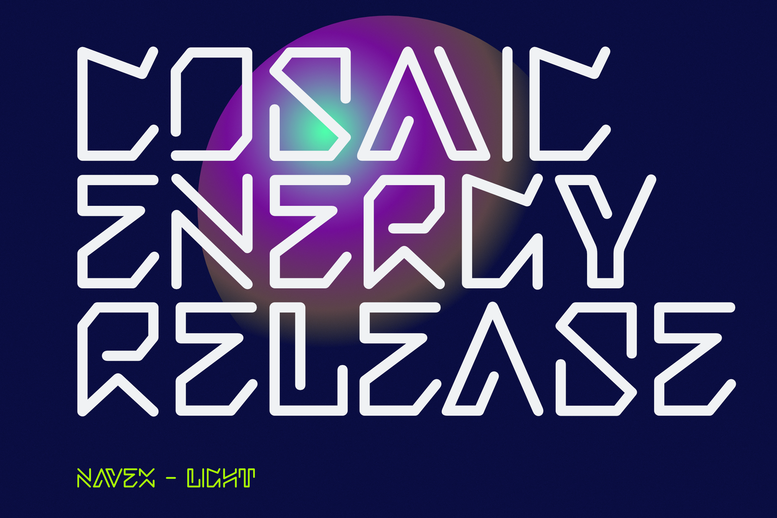 Navex is a futuristic monoline typeface crafted with angular precision and geometric clarity. Inspired by cybernetic interfaces, sci-fi glyphs, and modular design systems, Navex delivers a unique visual identity that’s both unconventional and readable.