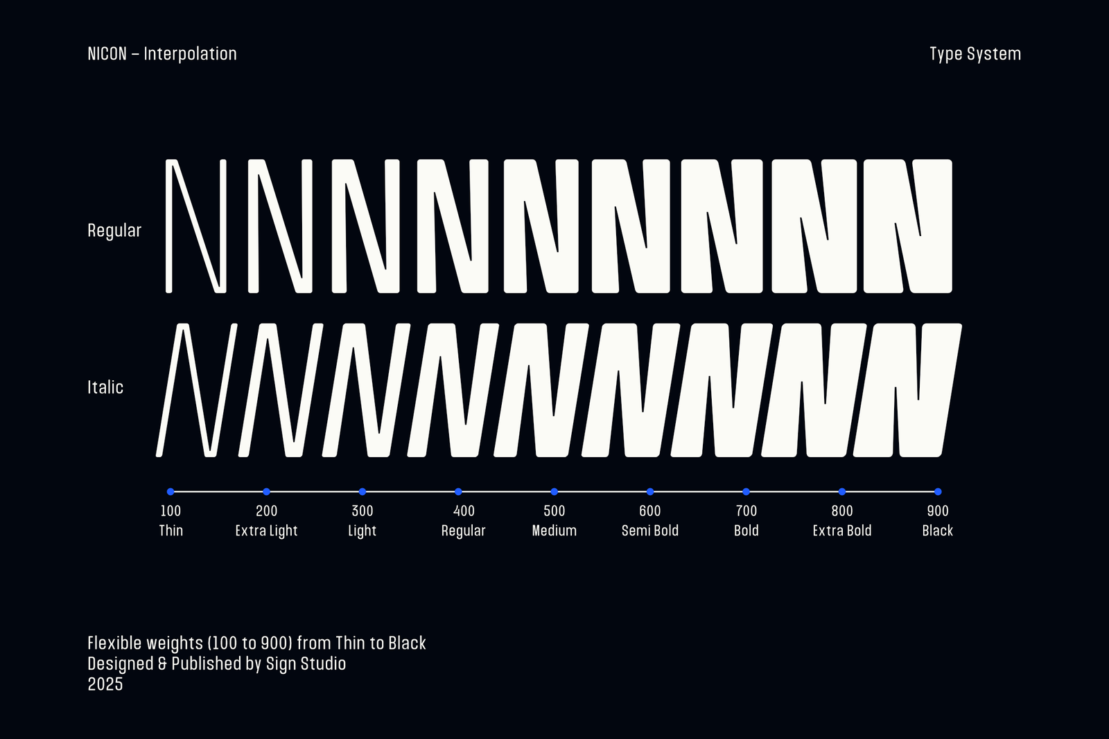 Carrying the same semi-condensed elegance and modern minimalism of the original Nicon, Nicon VF unlocks enhanced creative freedom with two variable axes: Weight (Thin to Black) and Italic. Seamlessly adjust weight and slant with precision—all in a single, efficient font file.