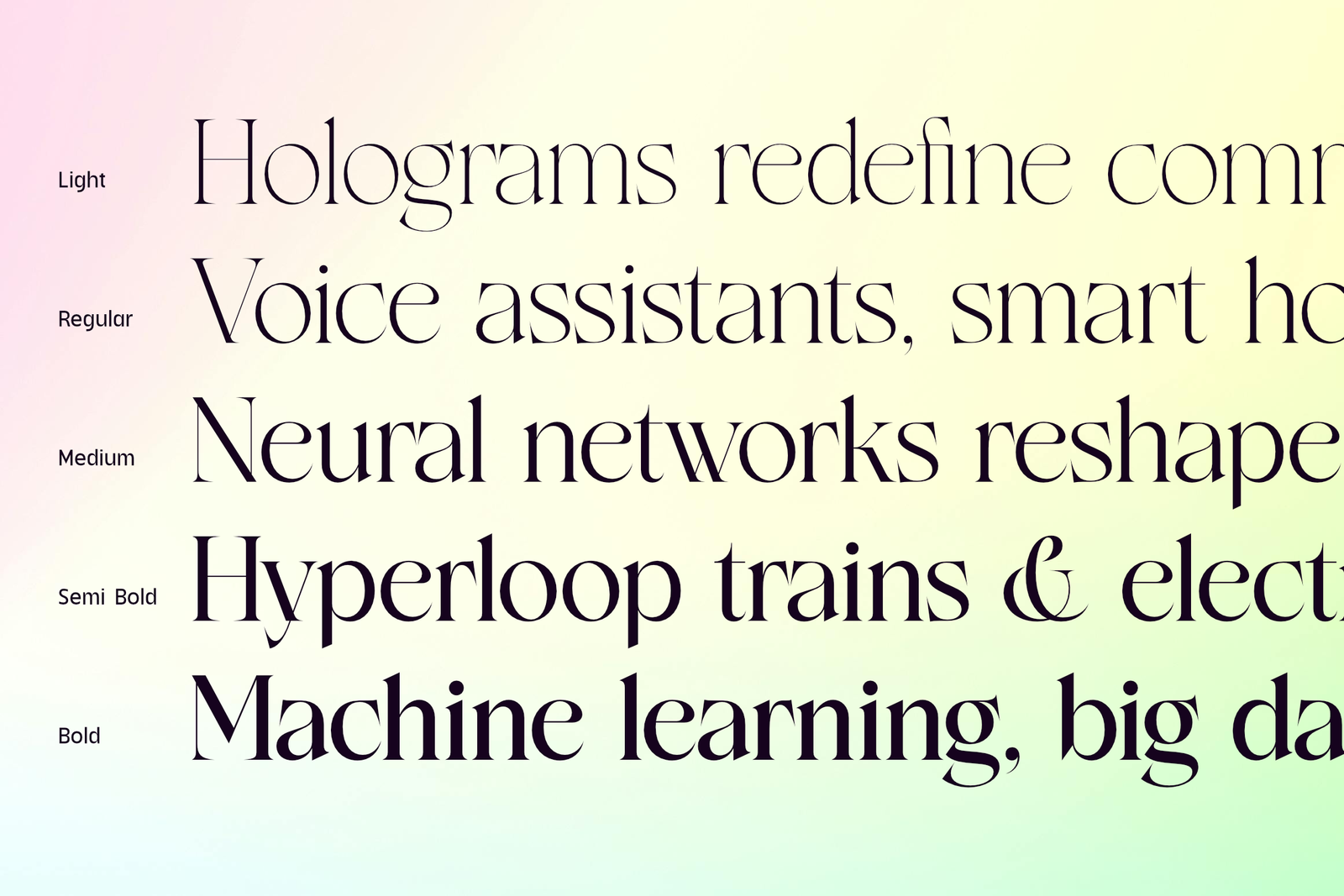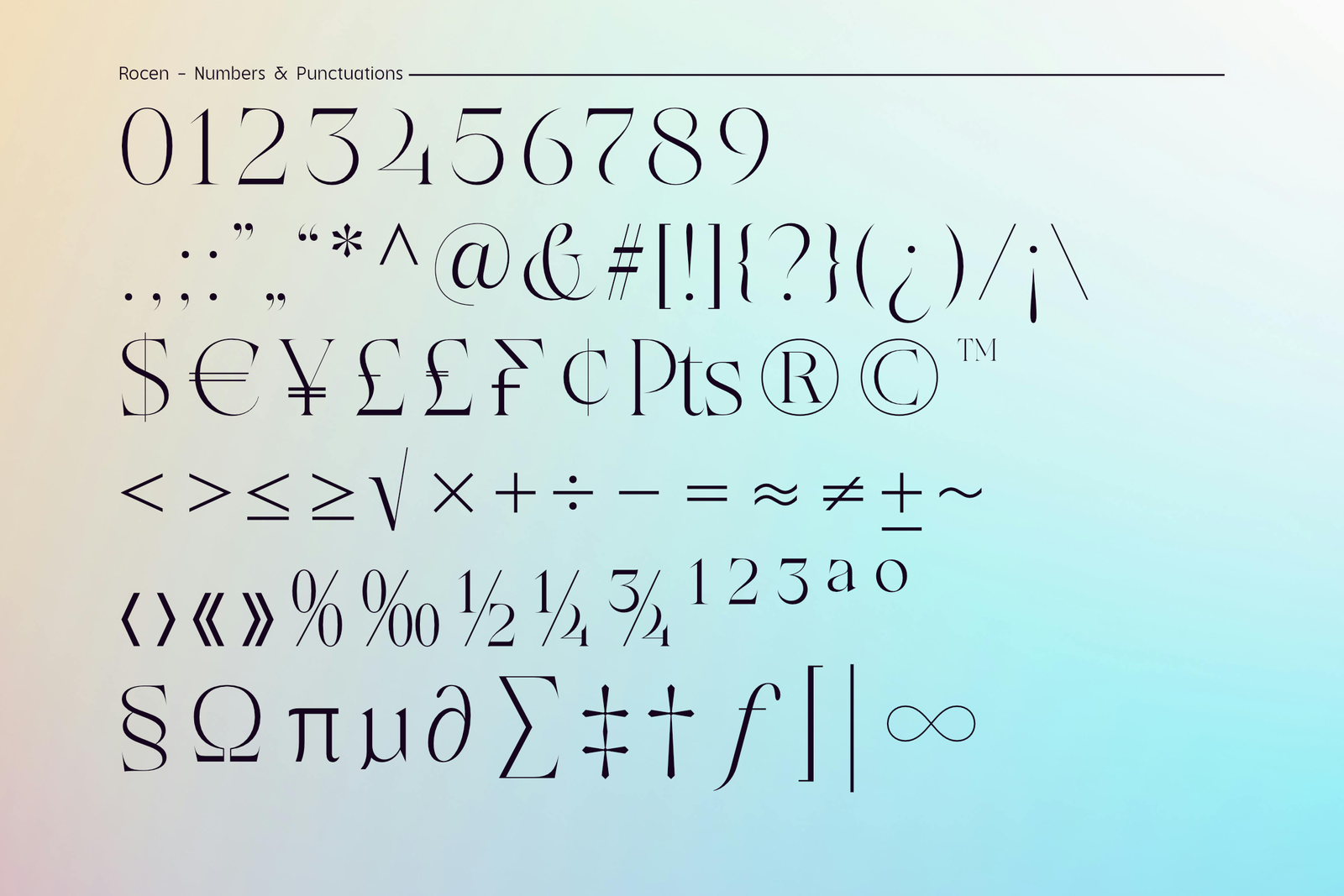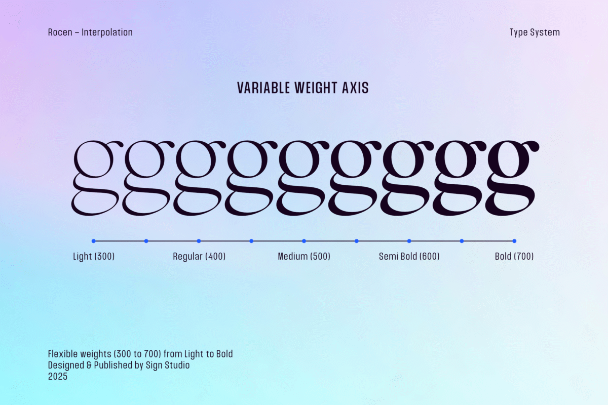 Defined by its balanced contrast, distinctive ligatures, and refined contemporary details, Rocen Variable adapts effortlessly to diverse contexts—editorials, branding, luxury packaging, or immersive digital experiences. Designers gain complete creative freedom to fine-tune weight transitions with precision, ensuring optimal readability and visual harmony at any scale.