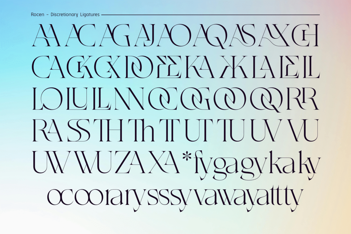 Like its static counterpart, Rocen VF comes fully equipped with advanced OpenType features, including: