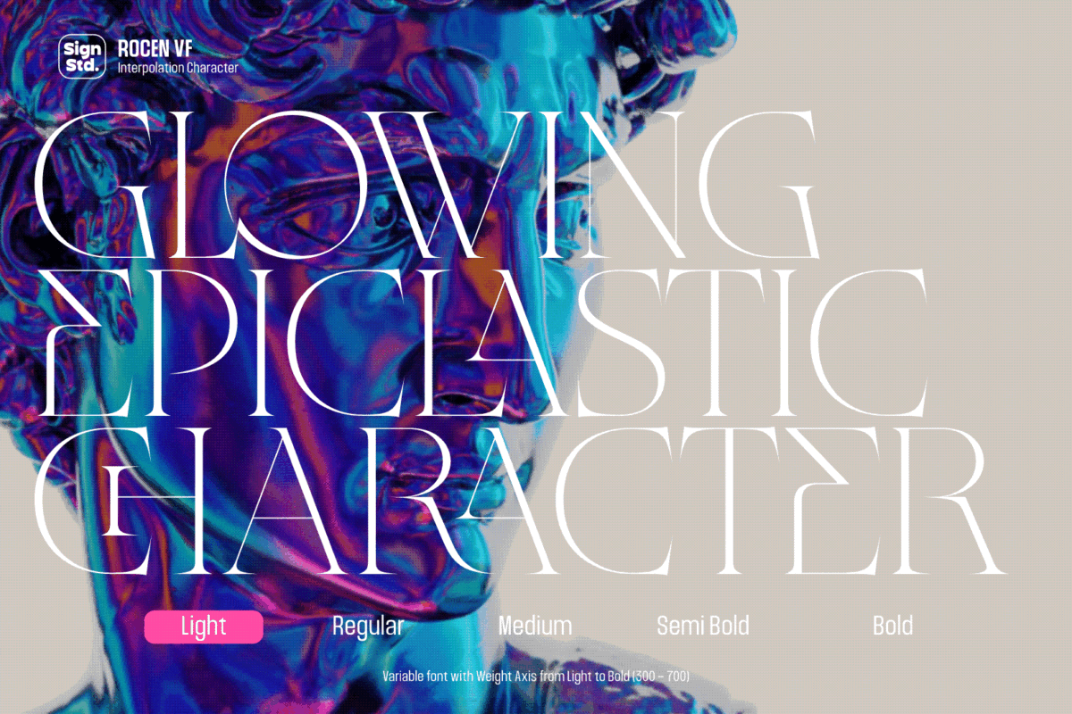 Rocen VF expands the timeless elegance of Rocen into a fully flexible variable format. Designed for modern creators, it seamlessly bridges classic refinement with cutting-edge technology, allowing smooth interpolation across its entire weight range. From the delicate finesse of Light to the commanding presence of Bold, Rocen VF offers infinite possibilities within a single file.