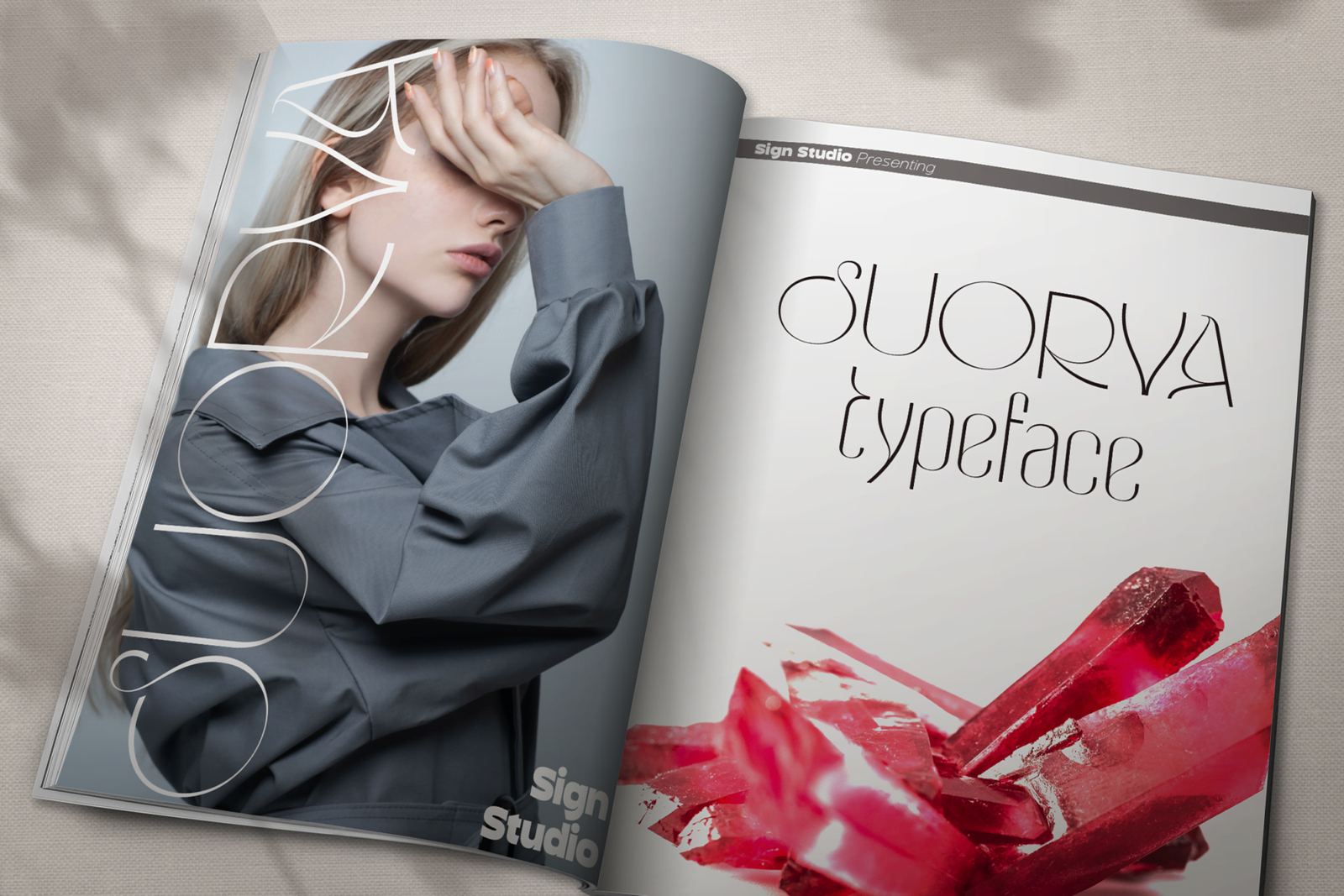 Suorva from the sans serif family is made for display needs. Each side of his body is well-measured and consistent. Has a Stylistic Alternate Set ( S, Y, a, e, g, k, y) and also Discretionary Ligatures (uppercase). All Glyphs have PUA Encoded which will make it easier to use in general editor software.