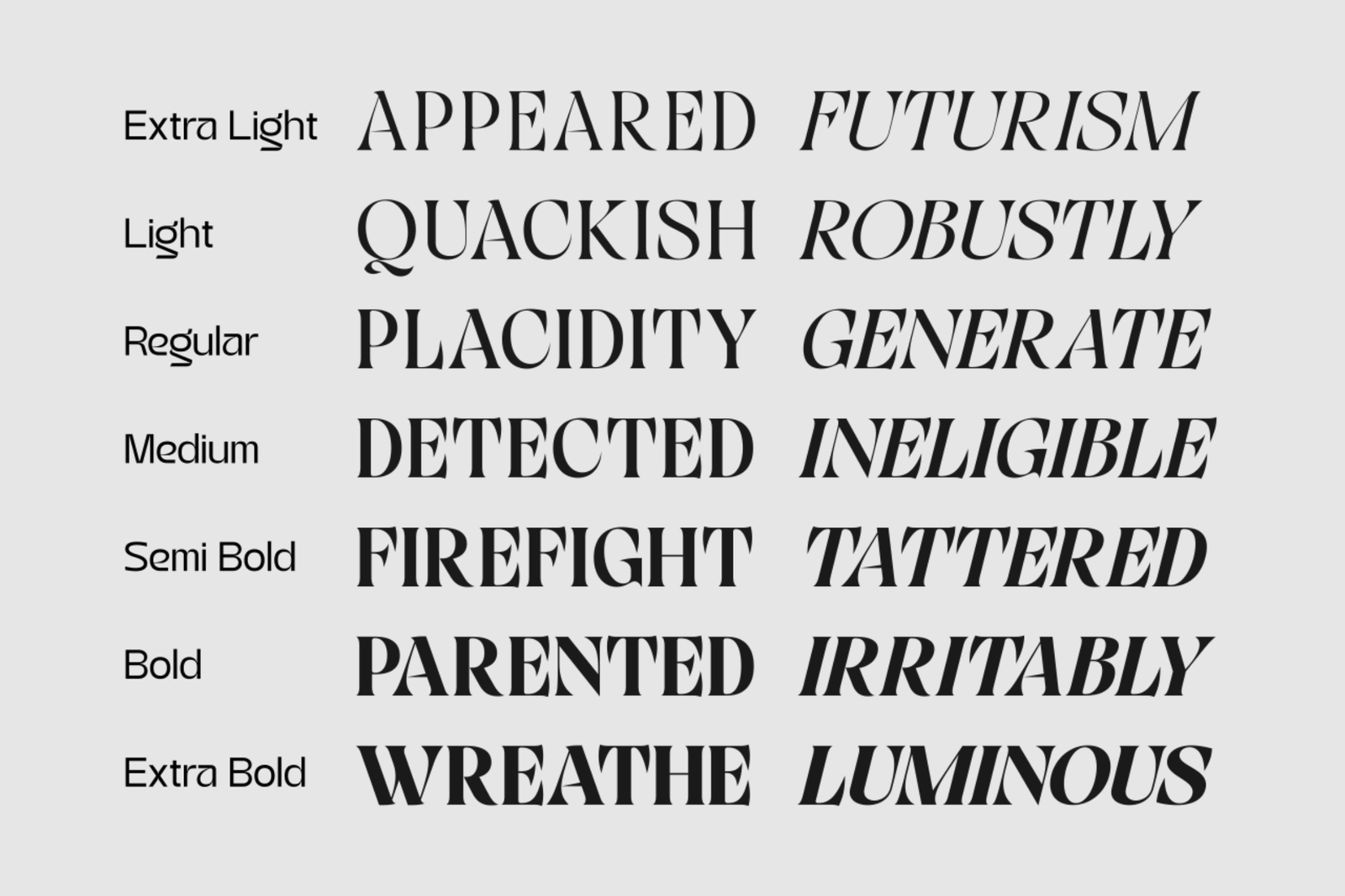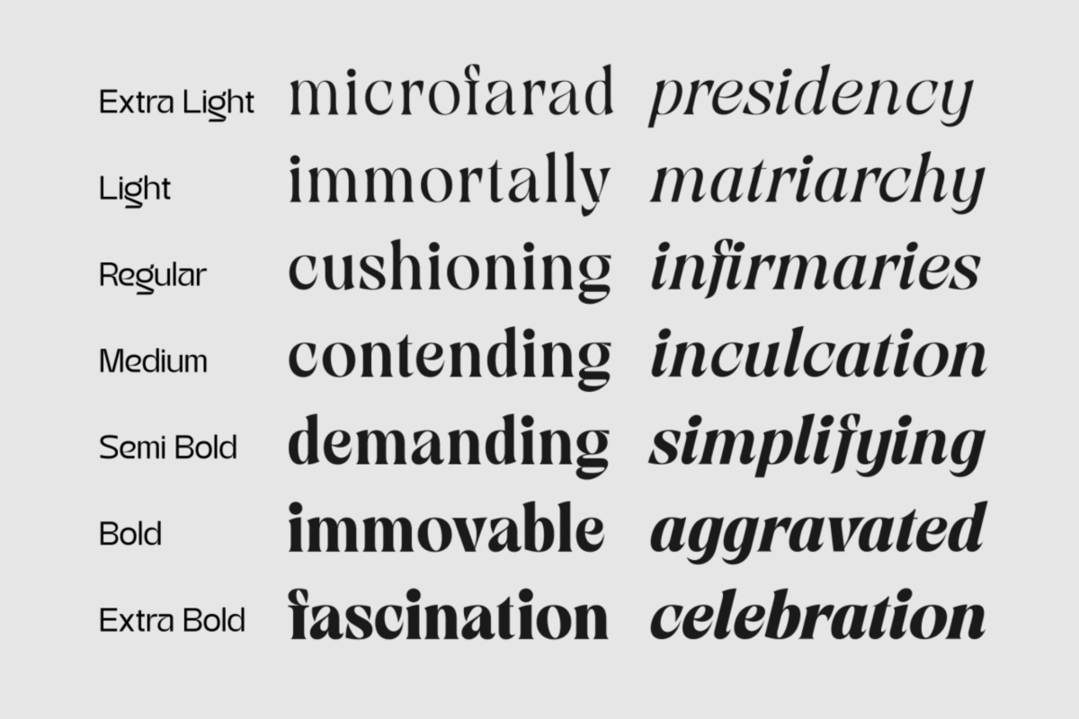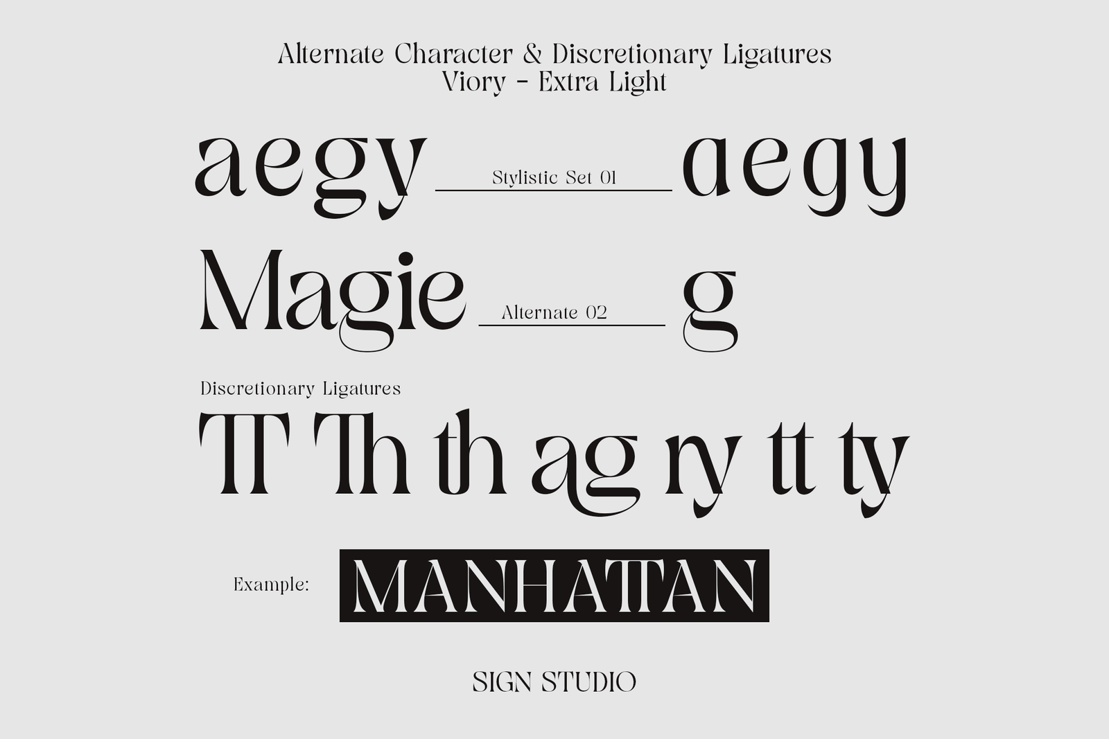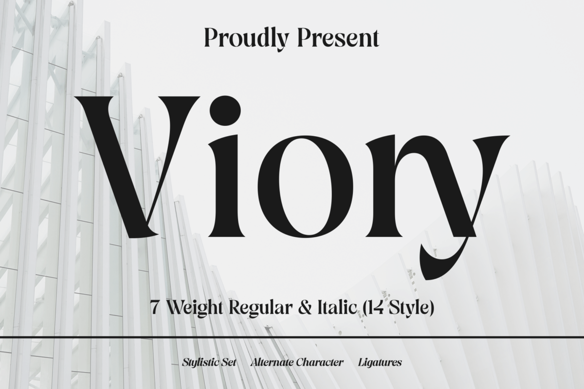 Introducing Viory, a font family designed to elevate your creative projects with its exceptional versatility and style. Viory boasts a diverse range of 7 thicknesses, each perfectly paired with an italic counterpart, offering a seamless blend of sophistication and functionality. Whether you’re crafting a modern brand identity or designing a timeless publication, Viory’s comprehensive features, including Stylistic Sets, Discretionary Ligatures, and Alternative Characters, ensure that every letter forms a cohesive and visually stunning whole.